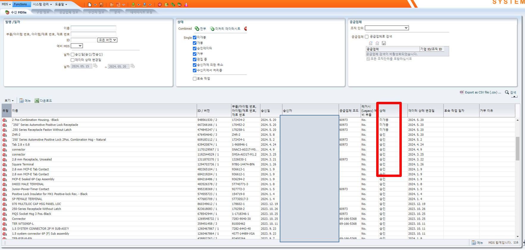 3. '미개봉'으로 표시된 건 공급업체에서 송부했지만 아직 열어보지 않은 파일입니다. '승인'은 공급업체에서 보낸 파일을 확인하고 문제없이 받았을 때 표시됩니다.