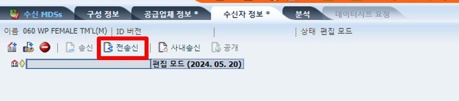 11. 수신자정보 탭에 있는 '전송신'버튼 클릭